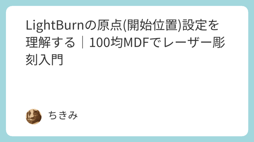 LightBurnの「原点(開始位置)」は、最初に混乱しやすいポイントですが、まずは 絶対座標 を使えば安心です。