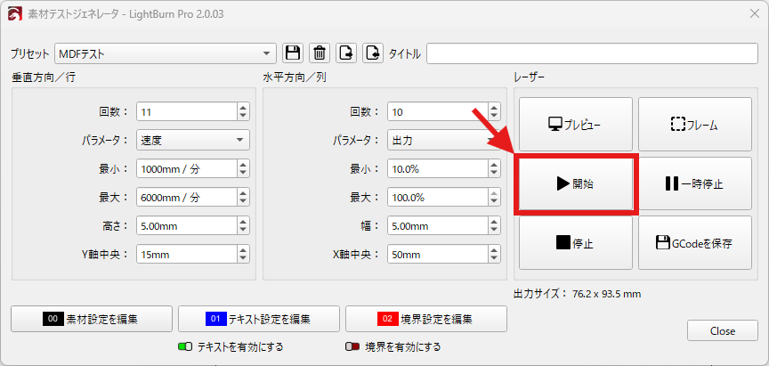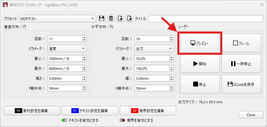 LightBurnの「素材テスト」とは?